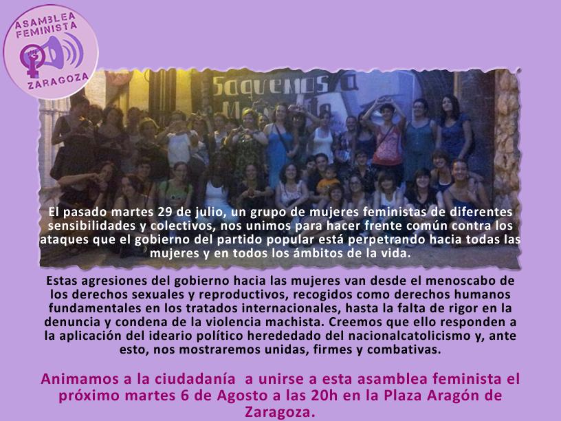 Desde la Asamblea Feminista de Zaragoza, convocamos a